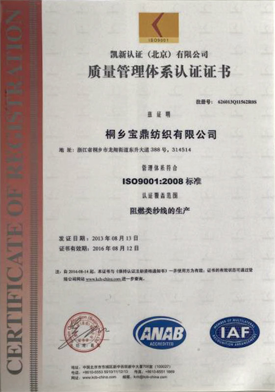 桐鄉(xiāng)寶鼎紡織股份有限公司成立于2010年,公司位于浙江省嘉興桐鄉(xiāng)市烏鎮(zhèn)鎮(zhèn)工業(yè)園東升大道388號,占地面積10,000多平方米。公司緊鄰申嘉湖高速,交通便捷,距離上海、杭州、蘇州僅一小時的車程。公司是集研發(fā)、生產(chǎn)、銷售為一體的高新技術(shù)型企業(yè),致力于阻燃紗線產(chǎn)品(包括玻璃纖維包芯紗以及各類不含玻纖的阻燃紗線產(chǎn)品)以及阻燃面料、床墊套等產(chǎn)品的開發(fā)、生產(chǎn),產(chǎn)品滿足美國CFR1633-16對產(chǎn)品阻燃性能方面的需求。十多年以來,在相關(guān)產(chǎn)品方面已擁有成熟豐富的生產(chǎn)經(jīng)驗。